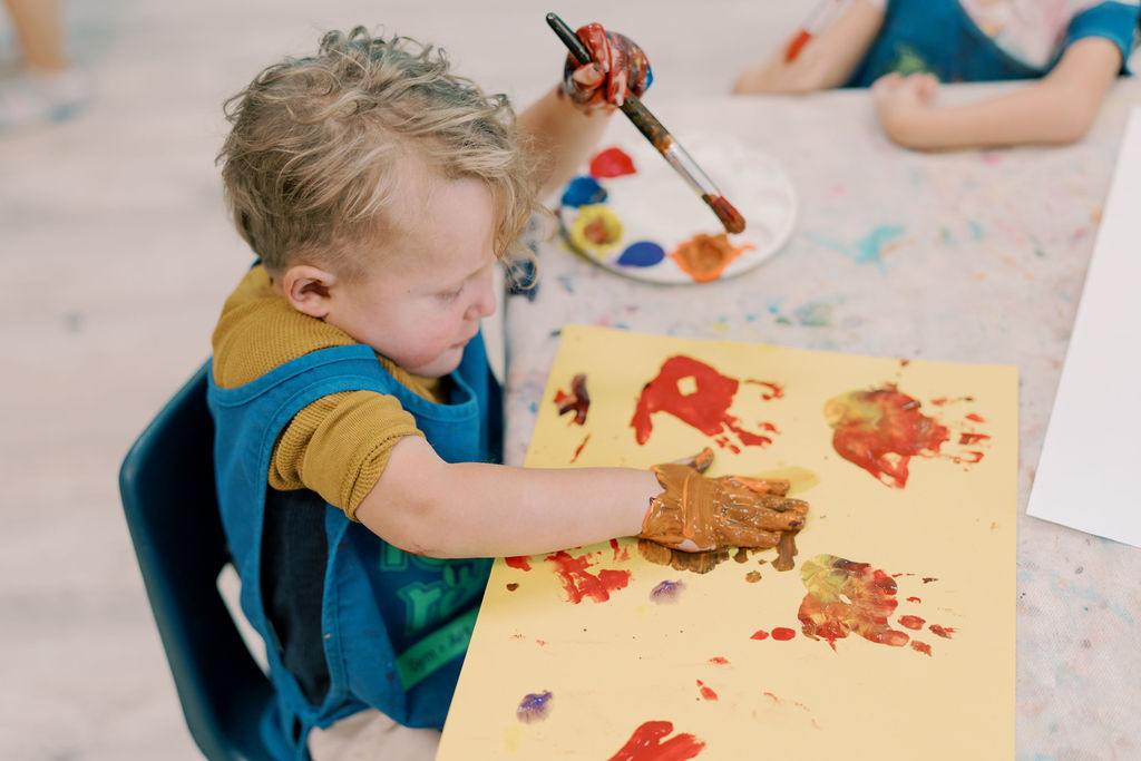 Toddlers and Preschoolers love our Romp n’ Roll art classes, and it’s no surprise! Our hands-on, engaging activities allow children to dive into creativity, rolling up their sleeves to craft their own masterpieces. These experiences spark imagination and boost self-esteem, making art a highlight of their week.