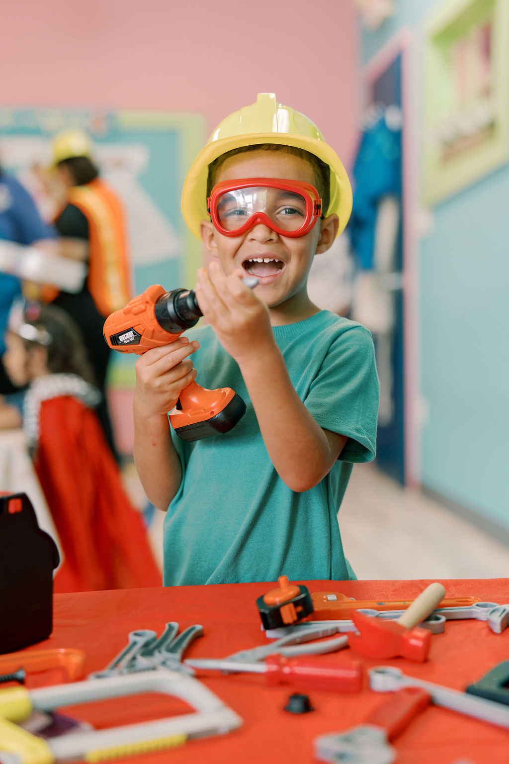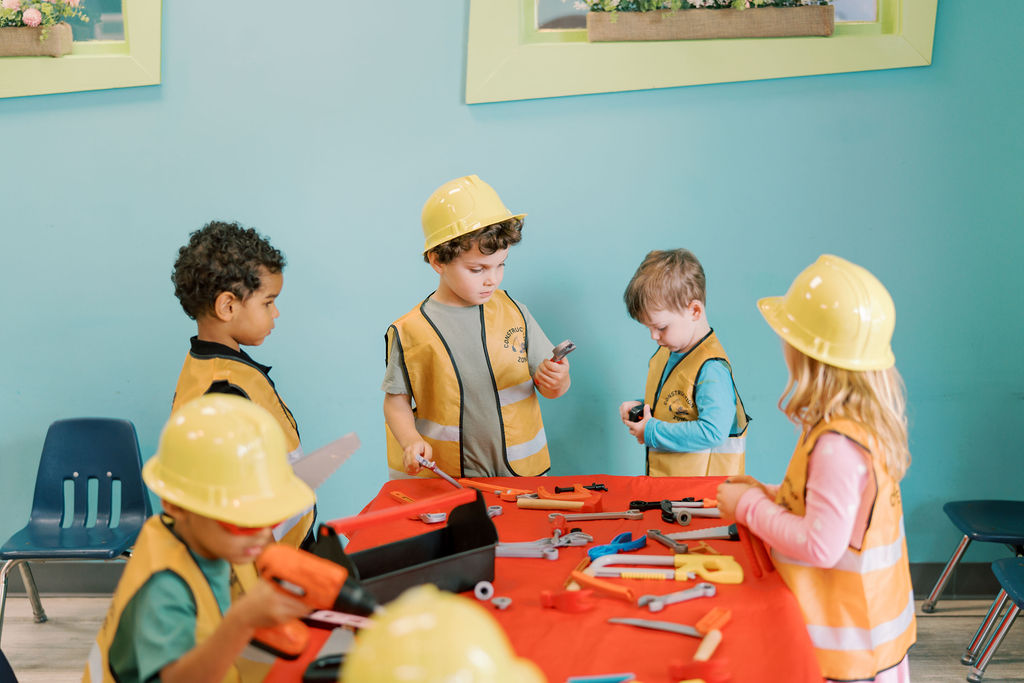 Construction: Do you have a budding engineer? Does your little one love to figure out how things are put together? Get ready for an Art adventure class designed for your young builder! Children will create construction-themed artwork but will also have the opportunity to hone their construction skills by building with Legos and other building materials, plus they learn about a different tool every week, exploring our collection of kid-friendly tools. Creating a variety of structures and following a building plan are some of the concepts and skills your child will be introduced to. In this class we’re building fun! This is a parent-optional class held in our art room. Our Construction Class is 60 minutes long and takes place in the Art Room.